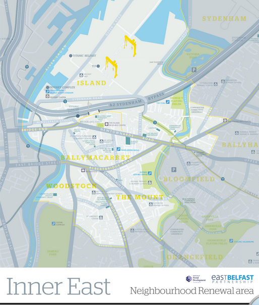 Inner East Neighbourhood Renewal Area includes – Short Strand, Lower Newtownards Road, Albertbridge Road, Albertbridge/Beersbridge, The Mount, Woodstock Road and Lower Ravenhill Road.