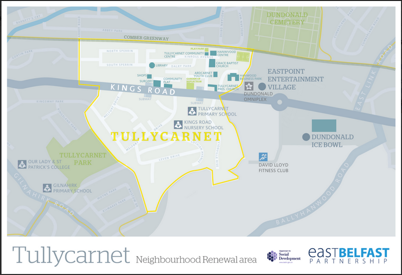 Tullycarnet Neighbourhood Renewal Area covers the Tullycarnet ward, which is located on the outskirts of east Belfast.